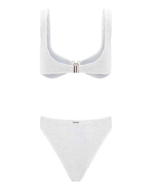 Dubai lives in L'Aqua's DNA, its glamour, its forward momentum, its refusal to treat the beach as anything less than an occasion. Founded in 2016 by a women-owned team with a clear ambition, the label set out to build designer beachwear that met the highest standards of quality and style without compromising either. The result is a distinctly structured aesthetic: fluid silhouettes with the kind of presence that carries from poolside to evening pool party without asking the wearer to change anything except her setting.