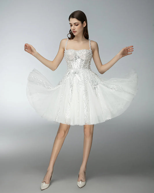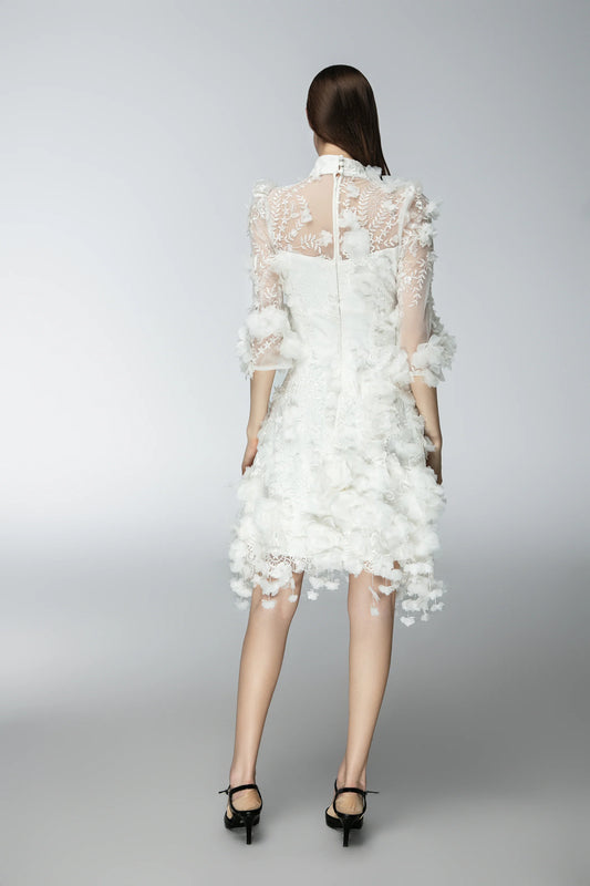 ÚCHÈ Spiral Long Sleeve Shirt Dress - White