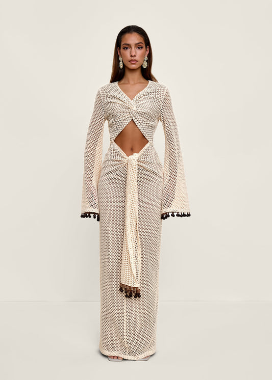 VAILLANT Ribbed Jersey Cardigan Dress with Built-In Bra - Ecru