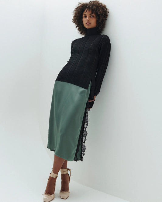 VAILLANT Knit Turtleneck with Lace Detail - Black